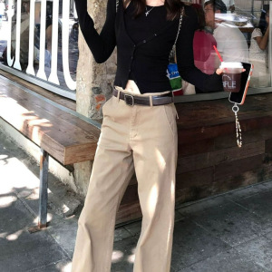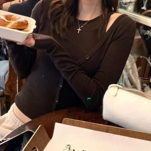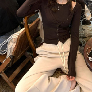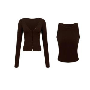 2025秋季新款女装时尚百搭小开衫两件套咖色套装黑色套装