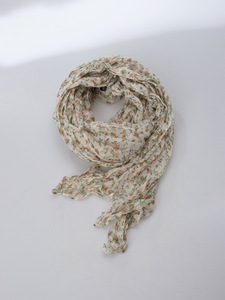 碎花麻花巾米色