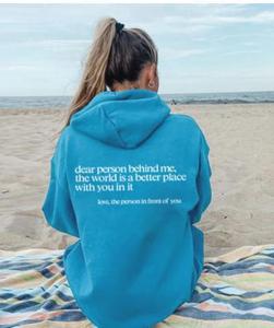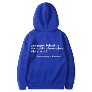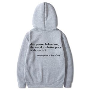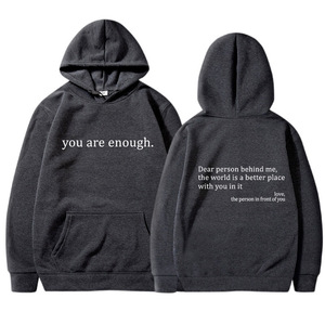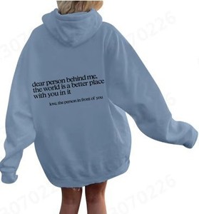 女式加绒卫衣字母标语印花袋鼠口袋抽绳连帽衫oversized字母印花