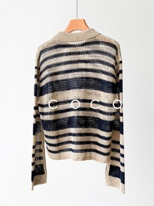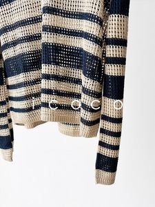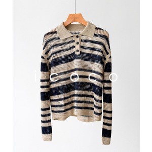 老渠道元厂纱!亚麻镂空条纹polo领宽松针织衫25年春