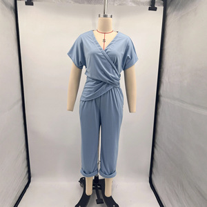 2025外贸女装欧美跨境夏季新品独立站速卖通时尚纯色不规则短袖套