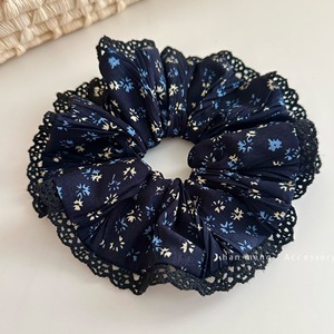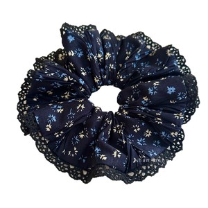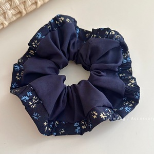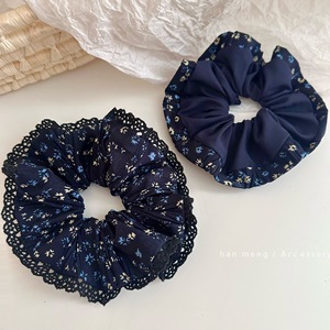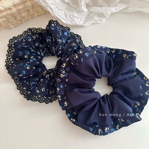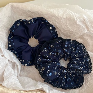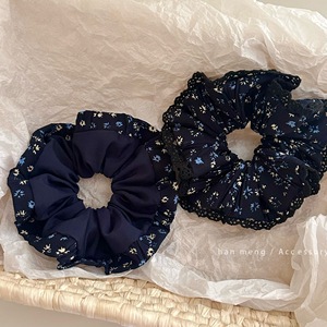 高级感复古碎花藏蓝色大肠发圈韩国2025新款丸子头发绳女马尾头绳