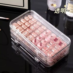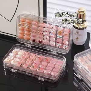 美甲店网红便携穿戴甲片整理展示盒三折叠美甲透明防尘饰品收纳盒
