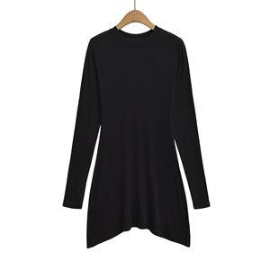 黑色半高领天丝羊毛混纺连衣裙女长袖打底裙修身显瘦气质包臀短裙
