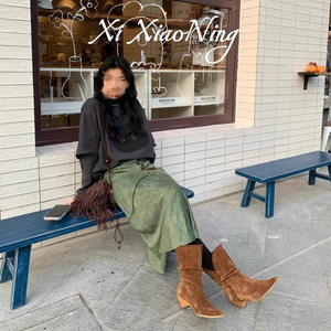小众轻奢2025秋冬手工女鞋跨境外贸复古女鞋女靴软皮复古 部靴褶