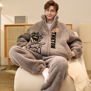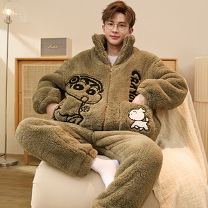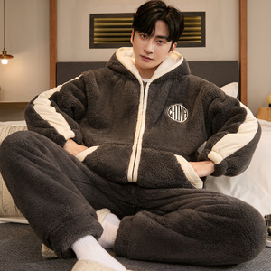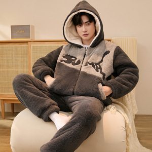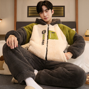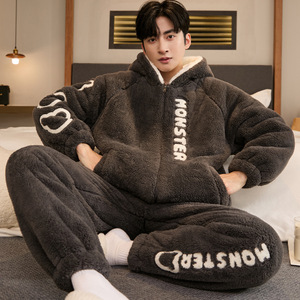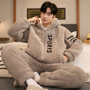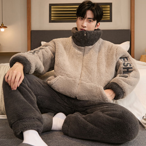 珊瑚绒睡衣男款冬季加厚加绒2025年新款青少年大码秋冬家居服男生