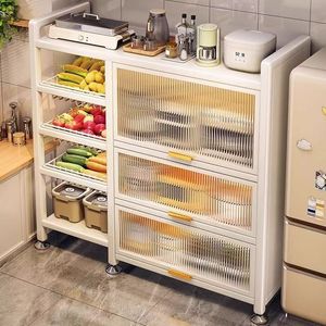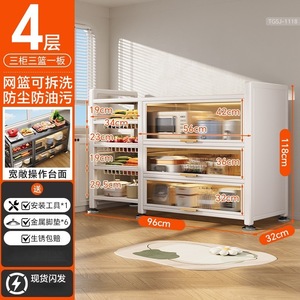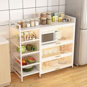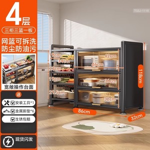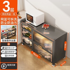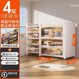 厨房置物架多层果蔬收纳架家用橱柜落地多功能工作台微波炉储物柜