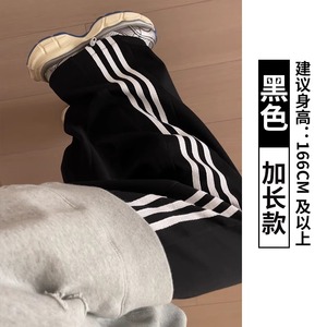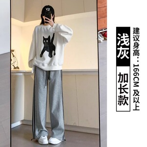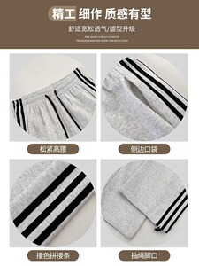 白灰色运动裤女秋季小个子直筒阔腿裤条纹宽松bf慵懒风束脚卫裤子