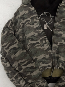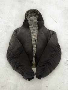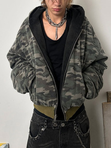 跨境欧美2025秋冬新款亚马逊复古街头连帽拉链口袋两面穿棉服外套