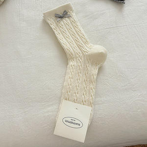 suxinaimin袜子女秋冬麻花中筒袜日系灰色系字母堆堆袜蝴蝶结长袜