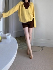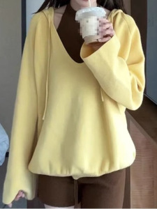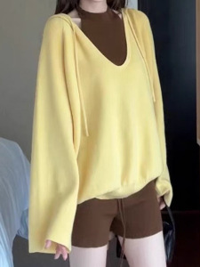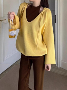 黄色慵懒连帽长袖套头毛衣女秋季2025新款宽松针织衫温柔百搭上衣