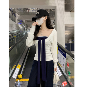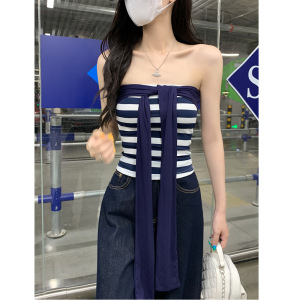 辣妹早秋套装女2025新款绑带条纹抹胸上衣搭配长袖防晒罩衫两件套
