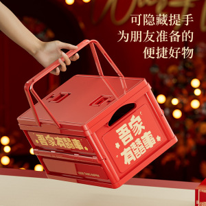 礼品箱节日送礼结婚中式婚礼收纳盒礼盒喜糖伴手礼手提折叠收纳篮