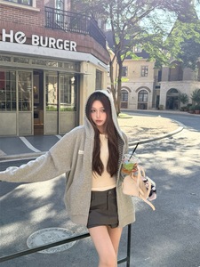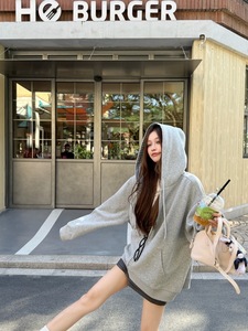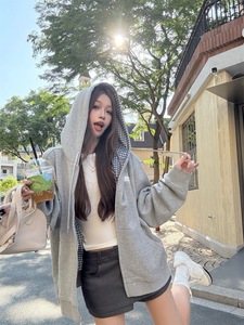美式慵懒设计感撞色格子连帽卫衣外套女秋季宽松百搭开衫休闲上衣