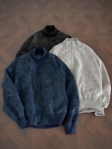 灰色扎染PU皮夹克男秋季美式复古boxy版型外套痞帅立领工装棒球服