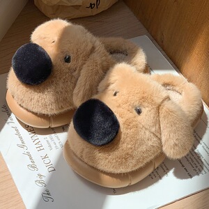 小狗棉拖鞋女款秋冬季室内家居保暖防滑加厚毛绒月子棉拖女亲子款