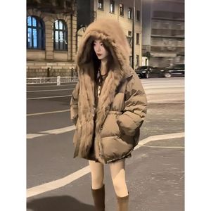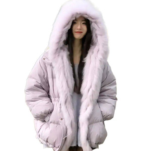 时尚百搭可拆卸仿狐狸毛领羽绒服女冬季2025新款90白鸭绒加厚外套