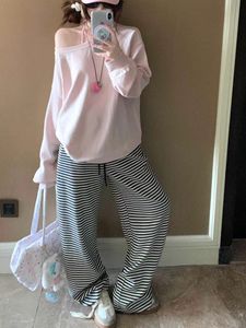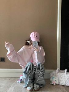 粉色学生甜妹斜领露肩卫衣女秋季2025新款小个子宽松慵懒风上衣潮