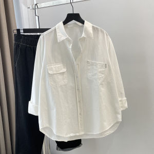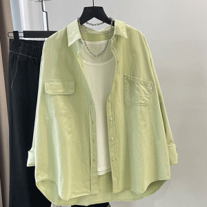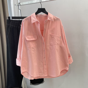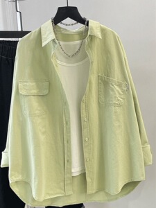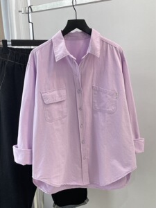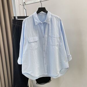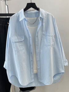 蓝色棉衬衫女2025春秋季新款薄外套上衣洋气时尚气质宽松纯棉衬衣