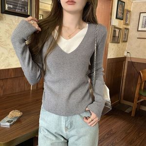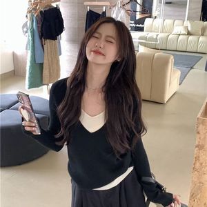 设计感领假两件针织衫毛衣女秋冬季新款内搭长袖打底衫上衣