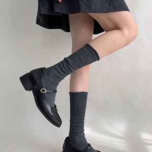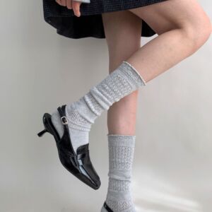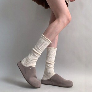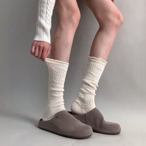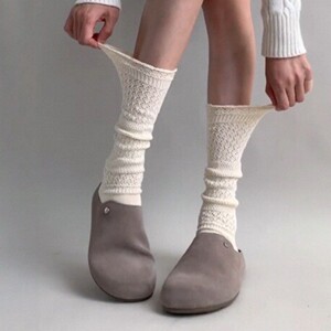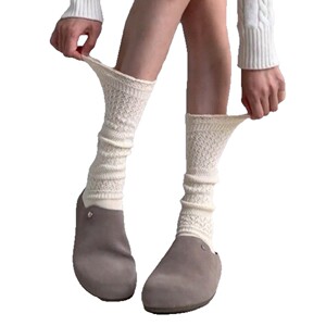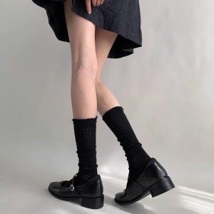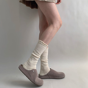靴尚棉浮雕镂空小腿袜女保暖针织复古灰色重工长筒秋冬堆堆长筒袜