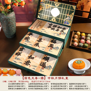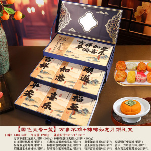 25中秋节新款伴手礼月饼礼盒装国风广式月饼柿柿如意送员工送客户