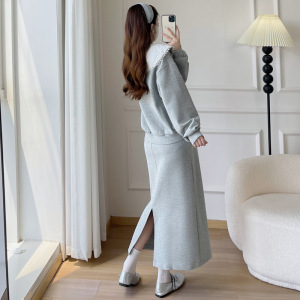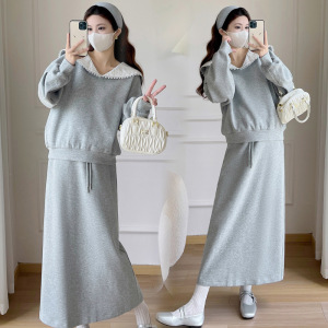孕妇装秋季新款小清新海军领卫衣抽绳半身裙韩版休闲显瘦孕妇套装