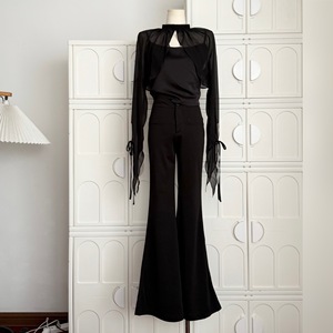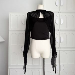 嘉伯丽尔黑色雪纺披肩斗篷缎面收腰短款吊带两件套