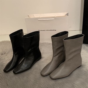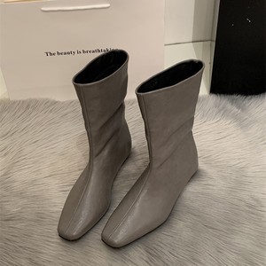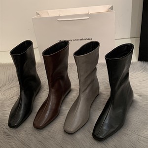 2025年秋冬新款方头坡跟高筒中筒靴子宽松套筒不过膝长靴骑士靴女