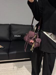 2025秋冬新款时尚复古拼色水桶包百搭网红爆款褶子云朵单肩斜挎包