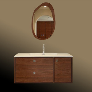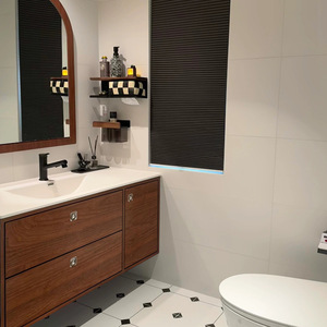 新中古风浴室柜组合陶瓷一体盆开放复古洗脸盆胡桃色卫生间洗漱台