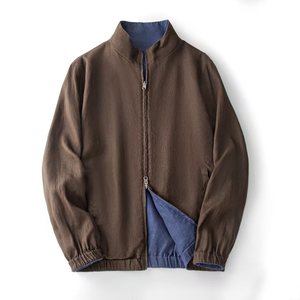 【 LP版】%雨露亚麻老钱风Bomber男士立领双面穿夹克休闲春秋外套