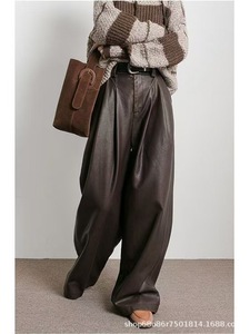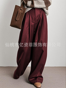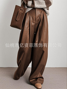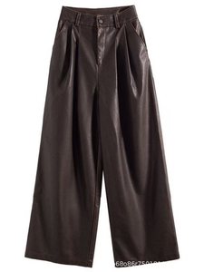 复古哑光PU皮裤长裤2025秋冬欧美时髦高腰显瘦直筒休闲裤女宽松裤