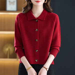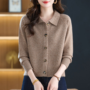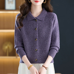 翻领小香风毛衣外套女春秋外搭洋气减龄上衣设计感纽扣针织开衫