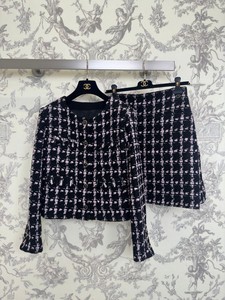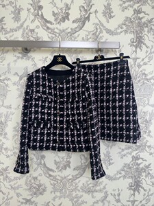 24秋冬独立站速卖通供应小香家时尚格纹圆领百搭小香风外套女