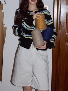 黑色条纹针织衫女2025秋气质宽松休闲显瘦长袖外搭开衫上衣
