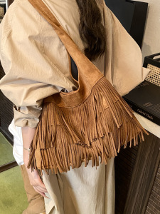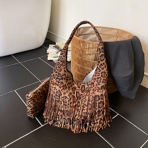超火小众豹纹包包女2025秋冬季新款流苏单肩腋下包手提托特水桶包