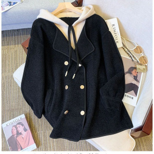 2025年新款两件连帽毛呢外套大码秋冬mm气质显瘦开衫呢子大衣大衣