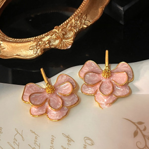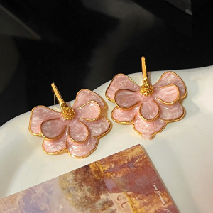 中古银针银杏叶花朵耳环时尚精致百搭耳钉小众高级感夸张耳饰批发