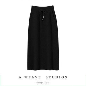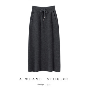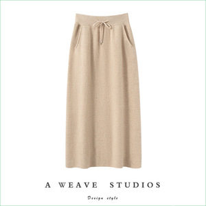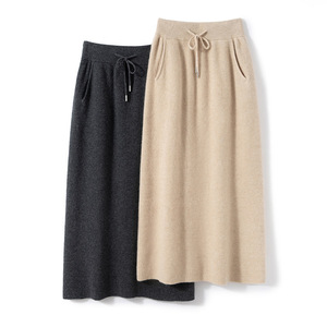 100纯山羊绒加厚半身裙女款带兜系绳中长裙秋冬新款针织毛绒裙子