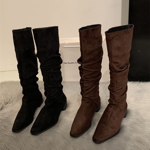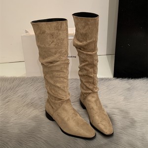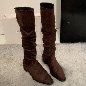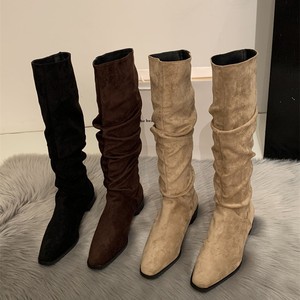 春夏卡其色美拉德堆堆靴女款复古褶皱2025新款靴子长筒靴长靴