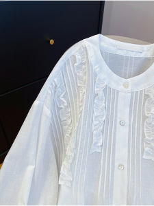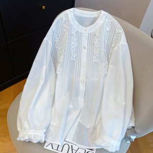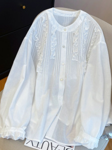 轻奢气质边立领薄款白色气质衬衫女2025早秋宽松显瘦洋气长袖衬衣