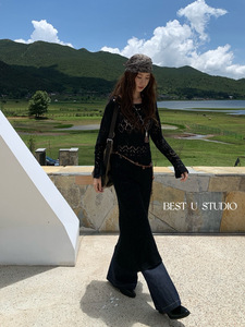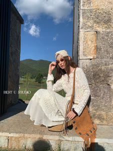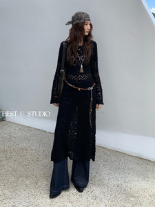 【高品质订货】外搭叠穿毛衣裙韩版ins潮镂空钩花长袖针织连衣裙