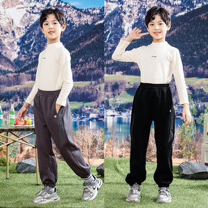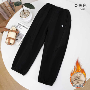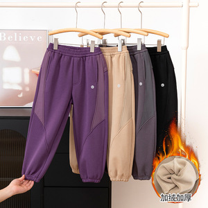 男童运动裤加绒加厚冬季拼接儿童卫裤防风休闲宽松童装女童长裤潮