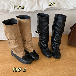 软底堆堆长筒骑士靴子女2025新款春秋法式时尚女款西部牛仔长靴潮