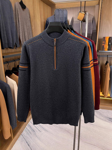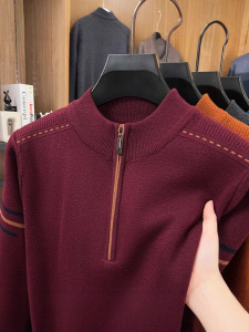 秋冬季新款加厚羊毛衫男士半高领拉链长袖休闲时尚保暖针织打底衫
