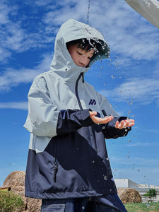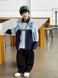 2025秋季拼接色户外登山儿童冲锋衣 熊猫圆圆防风防水男童外套