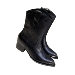 西部牛仔靴短靴女磨砂牛皮粗跟高跟靴子尖头复古2025冬新切尔西靴