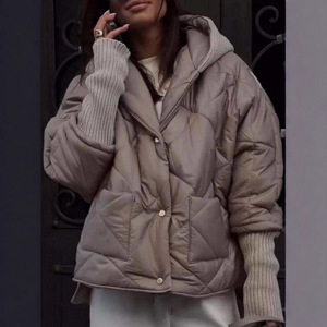 2025独立站秋冬欧美跨境时尚宽松毛衣拼接开衫立领女式外套棉服