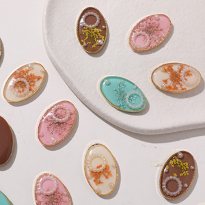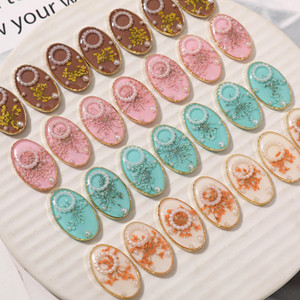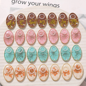清新森系椭圆合金珍珠滴胶干花树脂贴片diy头饰女发夹鞋花配配件